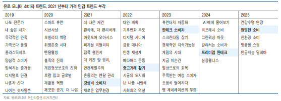 - 2021년 이후 ‘갓성비’, ‘중고거래’, ‘짠테크’ 등 가격 민감 소비자 확산.