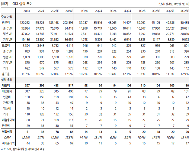 실제로 GKL은 일본인 VIP 손님 외에도 서울 거주 외국인 VIP 의존도가 높았던 탓에, 홀드율(카지노 수익률 지표)이 낮은 편이었습니다. 하지만 단체 중국인 관광객(PR Mass) 비중이 늘어날수록 홀드율 상승과 수익성 개선이 기대됩니다. 올해 상반기에도 이러한 흐름은 일부 반영되었으며, 하반기에는 보다 가시적인 실적 회복이 예상됩니다.