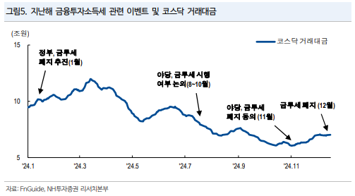 정치적 불확실성이 완화되는 시점에서 정부의 증시 부양책이 나올 가능성이 큽니다. 과거 정부에서도 주식시장 활성화를 위해 다양한 정책을 시행했으며, 이에 따라 증권주의 거래대금과 신용융자잔고가 증가하는 모습을 보였습니다. 특히 금융투자소득세 폐지 결정 이후 개인투자자의 시장 참여가 늘어나면서 거래대금 증가가 기대됩니다.