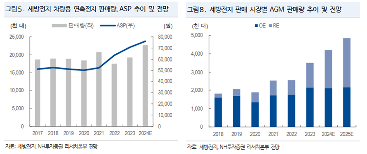 - 친환경차(하이브리드 및 전기차) 보급 확대로 AGM 배터리 수요 증가