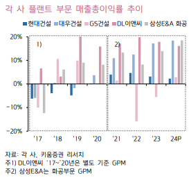 - DL이앤씨: 미국 GTPP 수주로 북미 시장 진출 확대, 국내 2차 전지 관련 플랜트 수주 예상.