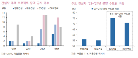 • GS건설: 수도권 분양 비중 75%, 주택 외 사업 매출 증가로 안정적 성장 기대.