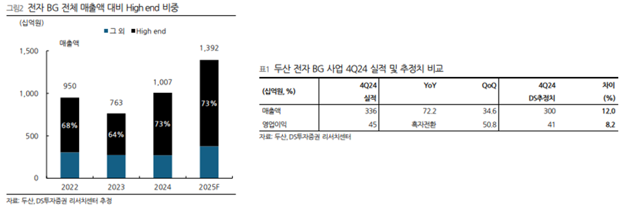 이 리포트는 25년 2월 20일 DS투자증권에서 발표한 '전자 BG 어닝 서프라이즈 - 두산' 리포트를 정리하였습니다.
