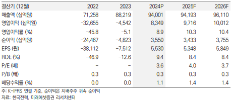 이 리포트는 25년 3월 4일 미래에셋증권에서 발표한 '밸류에이션 정상화에 기대 - 한국전력' 리포트를 정리하였습니다.