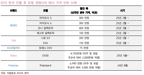 - 향후 BMW, Mercedes-Benz, Tesla 등의 프리미엄 브랜드뿐만 아니라 중국산 자동차(BYD 등)의 침투 가능성 증가.