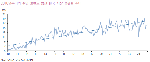 - 2021년 이후 수입 브랜드의 점유율 16% 유지.
