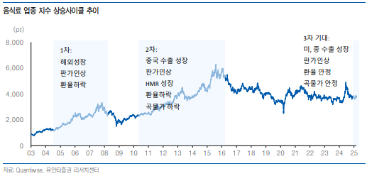 • 음식료 산업은 과거 두 차례의 상승 사이클을 경험했으며, 현재 3차 상승 사이클의 초입 단계에 있다고 평가됩니다.